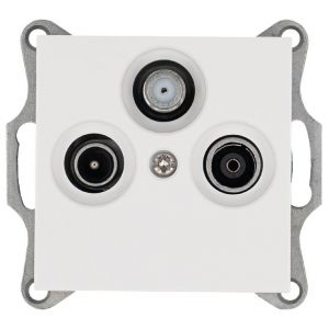 Механизм слаботочной TV+FM+ SAT розетки Jasmart серии ''G'' в цвете белый предназначен для подключения теливизора (TV) и радио (FM), SAT разъем - служит для подключения спутникового телевидения через рессивер. Такая розетка может передавать сигнал на перечисленные типы устройств. Накладка выполнена из вполикарбоната устойчивому к УФ излучению.