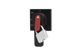 Ручка поворотная на дверь шкафа РП-335 - состоит из ручки, удлинительной оси и поворотной рукоятки - предназначена для ручного дистанционного переключения (включения и отключения) автоматического выключателя серии ВА-330А без открытия двери шкафа.