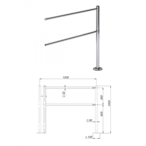Секция поворотная представляет собой трубу из шлифованной нержавеющей стали с поручнями, односторонней стойкой с отверстиями, стойкой с отверстием под стопорный механизм. Высота 1000мм, ширина 1200мм. Секция обеспечивает четкую фиксацию и формирование зоны прохода, которое достигается за счет установки дополнительных ограждений. Данная модель подходит для эффективного ограждения на проходных банков, административных учреждений, аэропортов. Конструкция поворотной секции делает монтаж простым и позволяет создавать всевозможные конфигурации ограждения с поворотом на необходимый угол