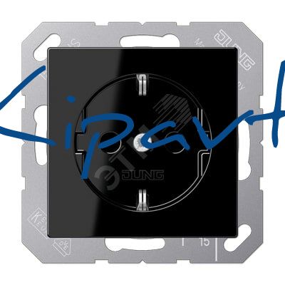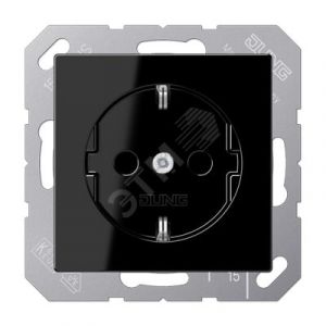 Штепсельная розетка SCHUKO одинарная, с заземлением, без шторок, 16A, 250В (механизм + накладка, без рамки). Серия A500 Материал- дуропласт Цвет- черный