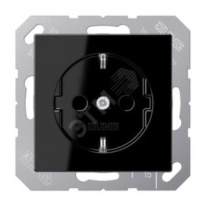 Штепсельная розетка SCHUKO одинарная, с заземлением, с шторками, 16A, 250В (механизм + накладка, без рамки). Серия A500 Материал- дуропласт Цвет- черный