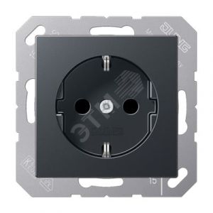 Штепсельная розетка SCHUKO одинарная, с заземлением, с шторками, 16A, 250В (механизм + накладка, без рамки). Серия A500 Материал- термопласт Цвет- матовый антрацит