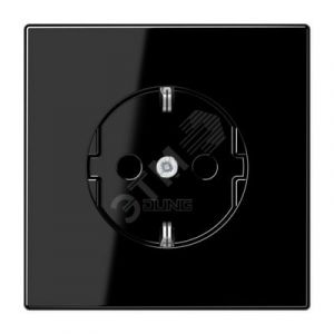 Штепсельная розетка SCHUKO одинарная, с заземлением, с шторками, 16A, 250В (механизм + накладка, без рамки). Серия LS990 Материал- дуропласт Цвет- черный