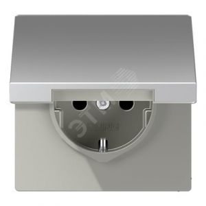 Штепсельная розетка SCHUKO одинарная, с заземлением, с шторками, с откидной крышкой, 16A, 250В (механизм + накладка, без рамки). Серия LS990 Материал- металл Цвет- алюминий