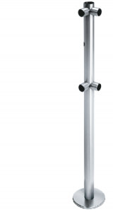 Стойка ограждения L-образная с отверстием под фиксатор, 2 муфты слева. Стойка выполнена из нержавеющей стали, высота 1000мм. Стойка ограждения обеспечивает четкую фиксацию и формирование зоны прохода, которое достигается за счет установки дополнительных ограждений. Конструкция стойки делает монтаж простым и позволяет создавать всевозможные конфигурации ограждения с поворотом на необходимый угол