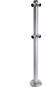 Стойка ограждения L-образная двухсторонняя, с четырмя муфтами с крепежом Стойка выполнена из нержавеющей стали высота 1000мм. Стойка ограждения обеспечивает четкую фиксацию и формирование зоны прохода, которое достигается за счет установки дополнительных ограждений. Конструкция стойки делает монтаж простым и позволяет создавать всевозможные конфигурации ограждения с поворотом на необходимый угол