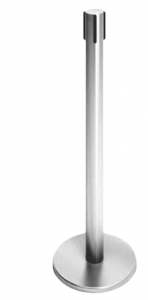 Стойка ограждения передвижная Oxgard из шлифованной нержавеющей стали с чёрным двухметровым ремнём с тормозом. Сойка выполнена в одном стиле с турникетами и идеально дополняет их. Предназначена для формирования зоны прохода при помощи мобильных полуростовых ограждений внутри помещения