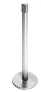 Стойка ограждения передвижная Oxgard из шлифованной нержавеющей стали с красным пятиметровым ремнём с тормозом. Стойка выполнена в одном стиле с турникетами и идеально дополняет их. Предназначена для формирования зоны прохода при помощи мобильных полуростовых ограждений внутри помещения
