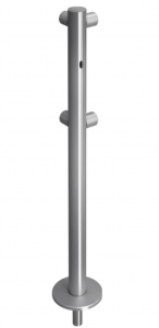 Стойка ограждения L-образная съемная с отверстием под фиксатор, 2 муфты слева. Стойка выполнена из нержавеющей стали с одним отверстием для крепления фиксатора под поворотные створку и секцию и двумя муфтами с крепежом, высота 1000мм. Стойка ограждения обеспечивает четкую фиксацию и формирование зоны прохода, которое достигается за счет установки дополнительных ограждений. Конструкция стойки делает монтаж простым и позволяет создавать всевозможные конфигурации ограждения с поворотом на необходимый угол