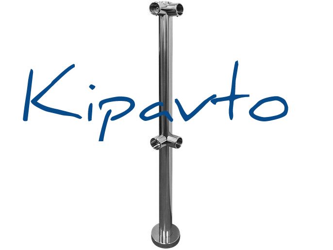 Стойка с крепежным фланцем и накладкой из нержавеющей стали AISI 304. Н - 1000 мм. С четырьмя отверстиями под соединительные муфты 2+2 под углом 90 градусов