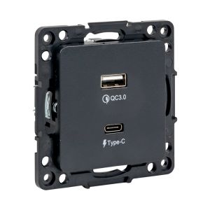 Стокгольм Механизм Розетки с 2USB type-A + type-C черный