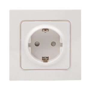 Стокгольм Розетка 1-местная с/з 16А белая с защ. штор.