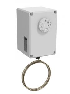 Капиллярные термостаты для защиты от замораживания это температурные реле, предназначенные для контроля температуры в каналах систем вентиляции, отопления и кондиционирования, в том числе в тех случаях, где необходимо предотвратить образование льда. Основная цель капиллярного термостата – своевременно обнаружить, что воздух после теплообменника вентиляционной системы перестал прогреваться и есть угроза того, что жидкость, циркулирующая в калорифере, может превратиться в лед и разорвать трубки теплообменника. Температура срабатывания капиллярного термостата устанавливается с помощью колеса для регулировки, которое находится внутри корпуса температурного реле. Термостат защиты от замораживания чувствителен к падению температуры ниже установленного порога на длине участка капилляра от 30 см. При превышении температуры выше порога гистерезиса происходит автоматический сброс термостата