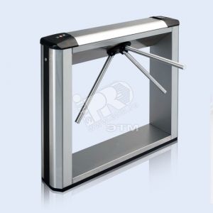 Тумбовый турникет с автоматическими преграждающими планками Антипаника. В корпус турникета встроены два считывателя, имеющие интерфейс связи с контроллером Wiegand