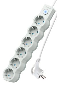 Удлинитель 5м, ПВС 3х0.75 6 гнезд, заземление, выключатель 10А белый