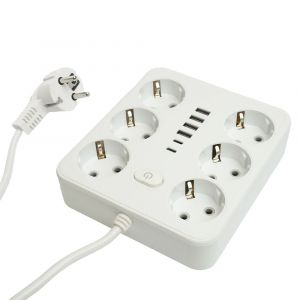 Удлинитель 6-местный c/з 3x1 мм2 1.8м 250В 10А 4USB+2Type-C 2.4А Home plus белый