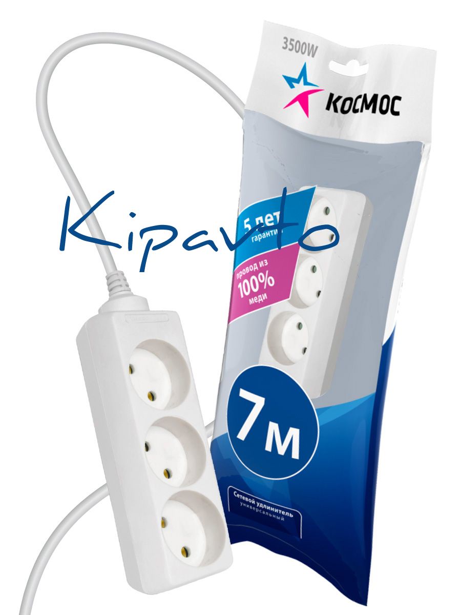 Удлинитель 7м, 3 гнезда ПВС 1мм2