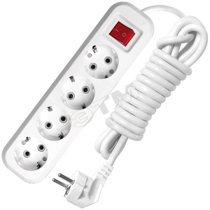 Удлинитель модификации Е-304 с заземлением, позволяют подключить приборы мощностью до 3500 Вт. Выключатель со световой индикацией позволяет управлять подачей питания подключенных электроприборов, а утопленная кнопка предотвращает случайное включение/выключение и выполняет функцию защиты механизма выключателя от ударных нагрузок.