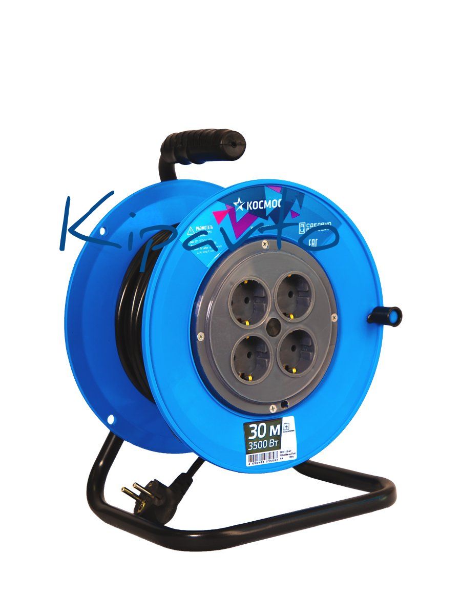 Катушка из прочного, долговечного пластика синего цвета, провод ПВС с заземляющей жилой и максимальной мощностью нагрузки 3500Вт. Специальный провод ПВС пониженной пожарной опасности с уменьшенным дымо и газовыделением и повышенной масло-бензостойкостью.