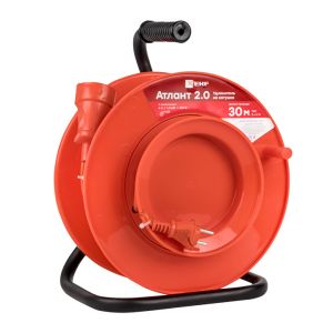 Преимущества: Рама из металлической трубы с резиновой рукояткой|Ударопрочный пластик катушки|Розеточный блок на четыре гнезда|Гибкий надежный проводник ПВС от 30 до 50 метров