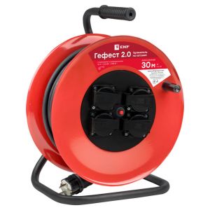 Удлинитель на катушке Гефест 2.0 4 гнезда 40м с заземлением и предохранителем КГ 3*2,5 16А/3,5кВт IP44 PROxima