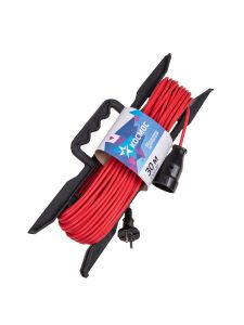 Силовой удлинитель на рамке и заметным ярким проводом ПВС сечением 2x0,75 мм без заземления и максимальной мощностью нагрузки 1300 Вт. Защита от пыли и влаги по стандарту IP20.