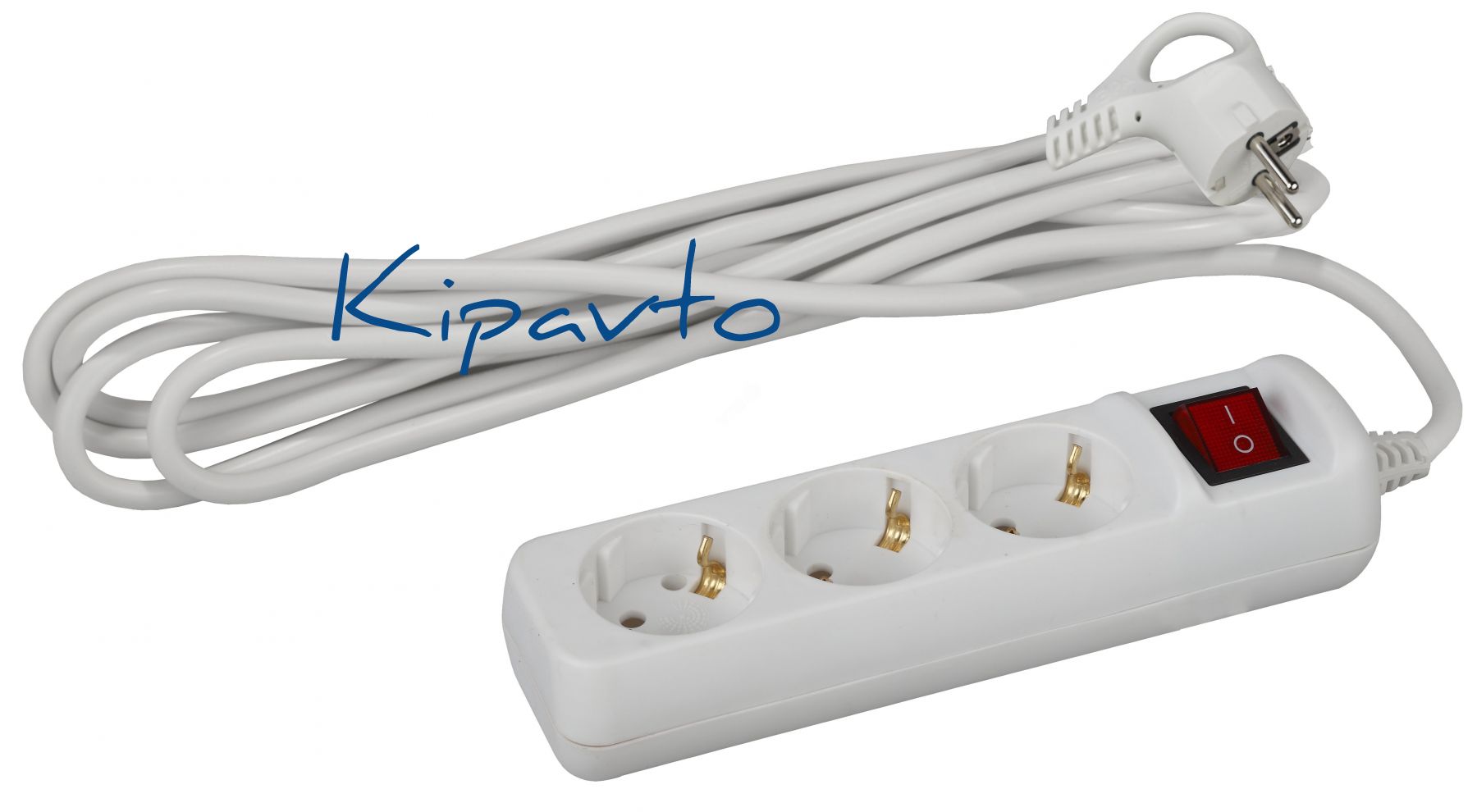 Удлинитель с заземлением, 3x1мм2, 16A, ПВС, с выключателем, 3 гнезда, 3м 10/480 U-3es-3m-3x1