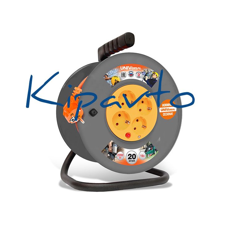 Цельнолитой корпус типа ''катушка'' изготовлен из полипропилена первичной переработки. Эргономичная изолирующая ручка – дополнительная защита от поражения электрическим током. Стойка – из трубы диаметром 18 мм, толщиной стенки 1 мм. Сетевой шнур изготовлен из провода ПВС и армирован неразборной литой вилкой. 4 гнезда розеток. Реле защиты от перегрева, предохраняющее удлинитель от перегрузок. Провод марки ПВС (ГОСТ 7399-97) сечением 3x0,75 мм2.