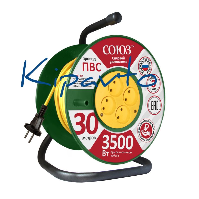 Удлинитель Союз силовой на катушке с 4 гнезда 3500 Вт 30м