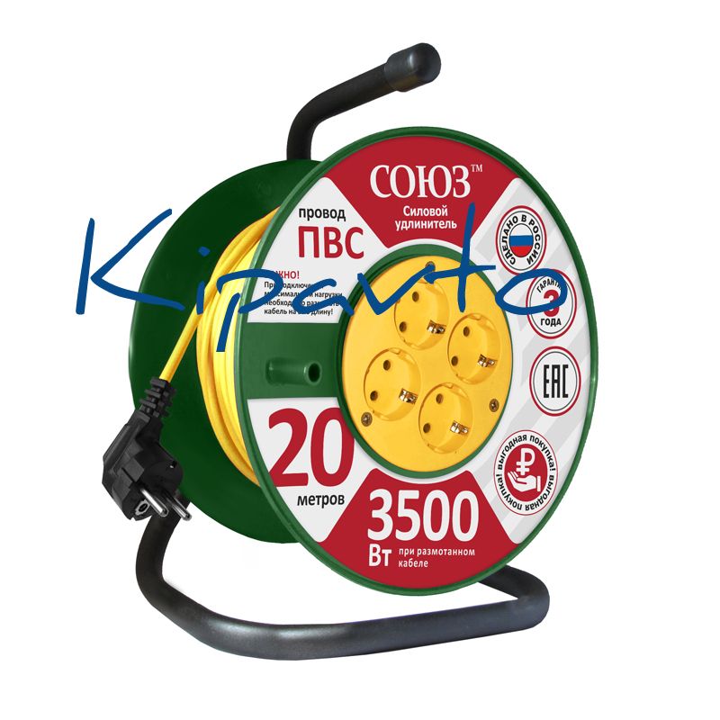 Удлинитель Союз силовой на катушке с 4 гнезда 3500 Вт с заземлением 20м