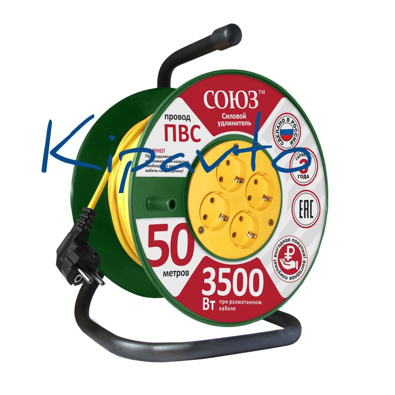Удлинитель Союз силовой на катушке с 4 гнезда 3500 Вт с заземлением 50м