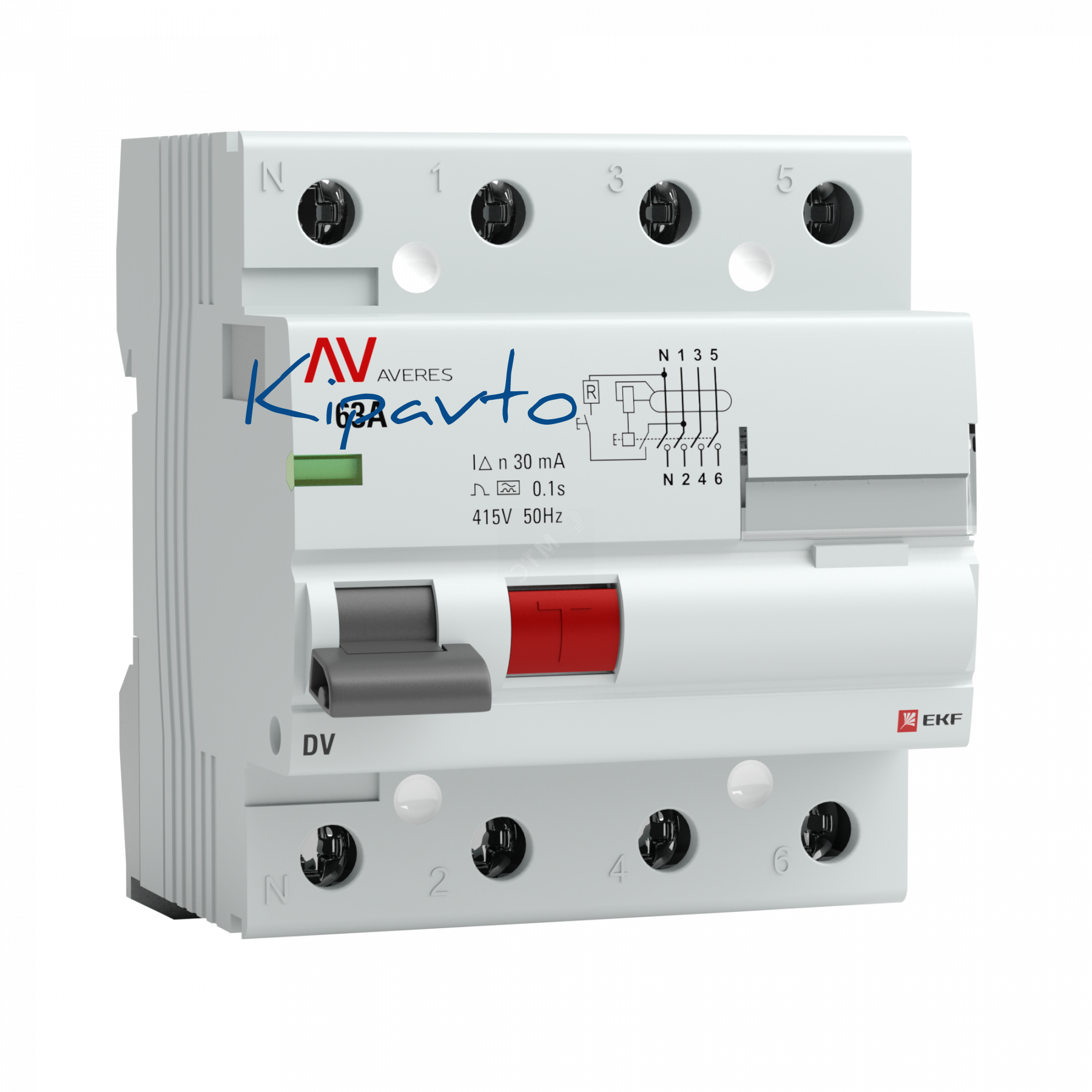 - выключатель дифференциального тока DV 4P 25А 30мА тип A электромеханичекий 6kA AVERES EKF