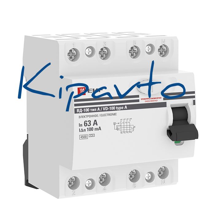 - выключатель дифференциального тока ВД-100 4P 63А 100мА тип А электронный 4, 5кА PROXIMA EKF