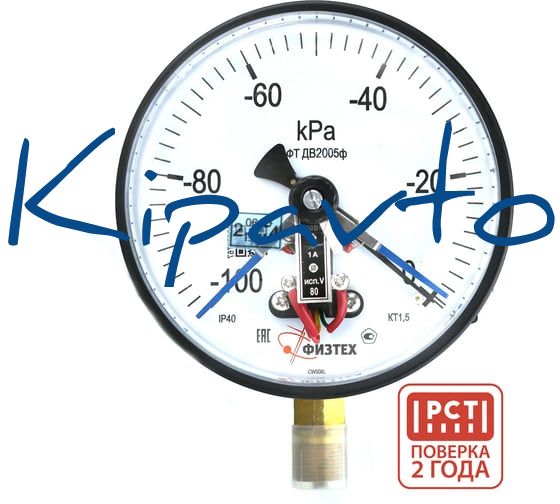 Вакуумметр электроконтактный Физтех ДВ2005ф исп V -100…0 кПа кт.1,5 d.160 IP40 M20х1,5 РШ 4687205178046