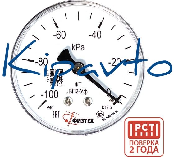 Вакуумметр технический Физтех ВП2-Уф -100…0 кПа кт.2,5 d.63 IP40 G1/4 ОШ 4687205621351