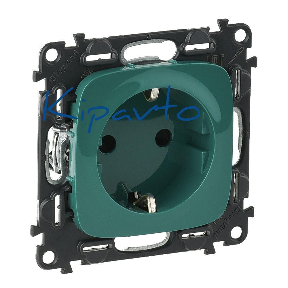 Valena ALLURE Розетка силовая 2К+З 16А 250В со шторками безвинтовые зажимы с лицевой панелью Зеленая
