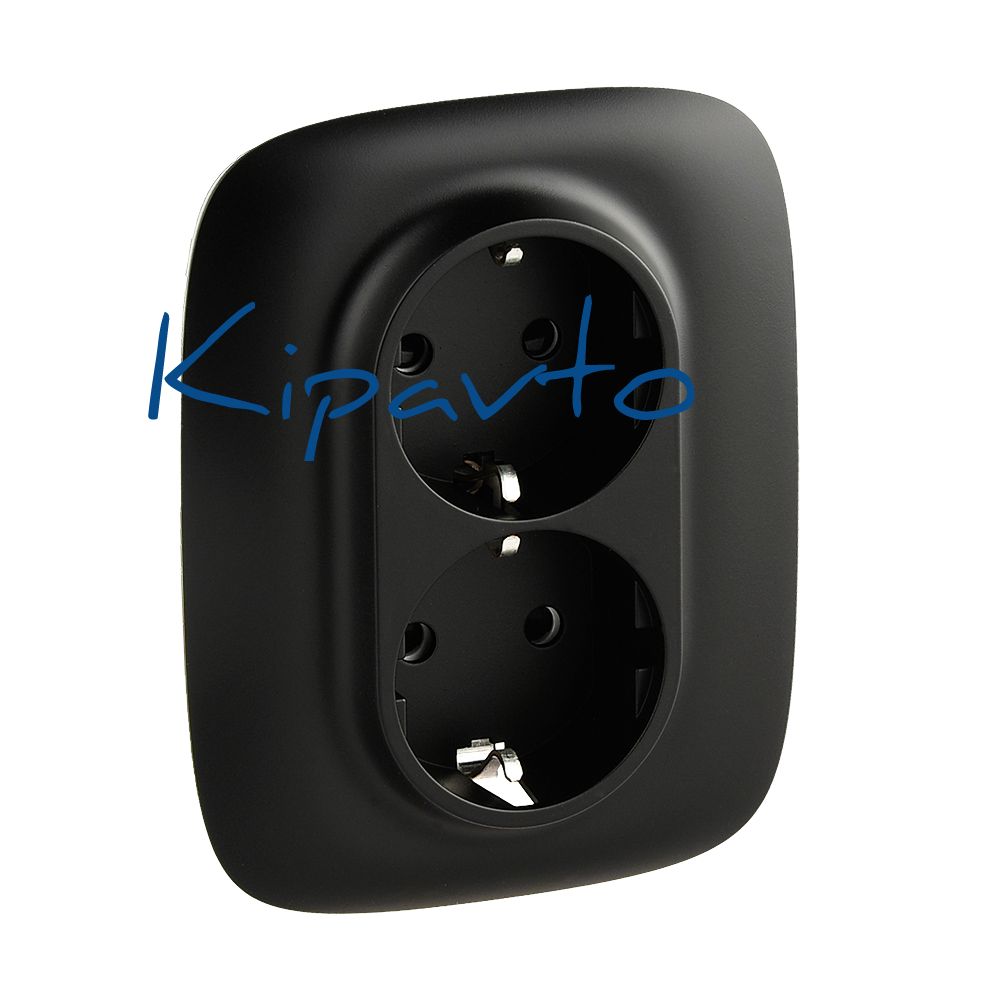 Valena ALLURE Розетка силовая двойная 2х2К+З 16А 250В с лицевой панелью со шторками безвинтовые зажимы антрацит