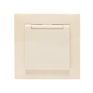 Валенсия розетка 1-местная с/з 16А кремова с крышкой и защ. штор.