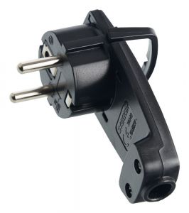 Вилка угловая плоская с кольцом, с заземлением, 250 В,16 А, IP20, черная