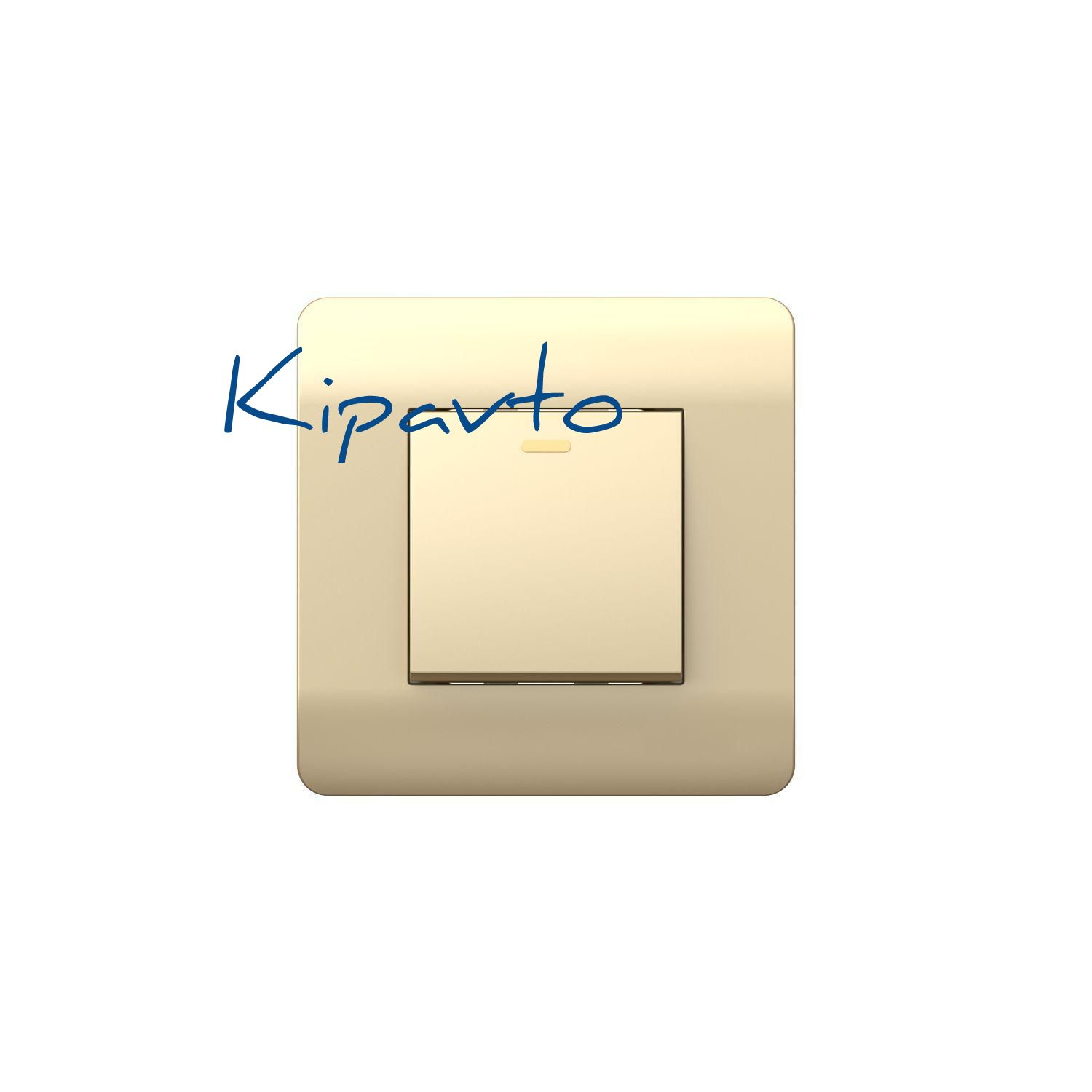 Выключатель 1-клавишный без фиксации с подсветкой, 10А, шампань