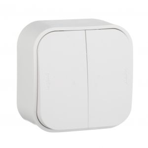 Выключатель 2-клавишный для открытой установки проходной 10А белый QUTEO