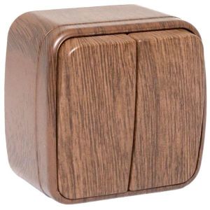 Выключатель 2-клавишный ОП Минск 10А темное дерево