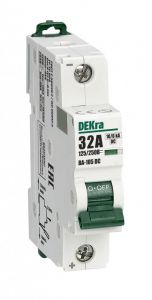 Автоматический выключатель серии ВА-105 DC DEKraft, 1P, ном. ток 32 А, характеристика C, откл. способность Icn 10 кА при 125 В/6 кА при 250 В, установка - на DIN-рейку, ширина - 1 мод. х 18 мм. Выключатели ВА-105 DC применяются для защиты от перегрузки и КЗ в цепях постоянного тока, в частности в системах автоматизации и управления, транспорта, генерации и распределения электроэнергии и др. Окошко-индикатор всегда показывает состояние аппарата вне зависимости от положения рукоятки управления.