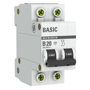- автоматический выключатель ВА 47-29 2P 20А (B) 4, 5кА BASIC