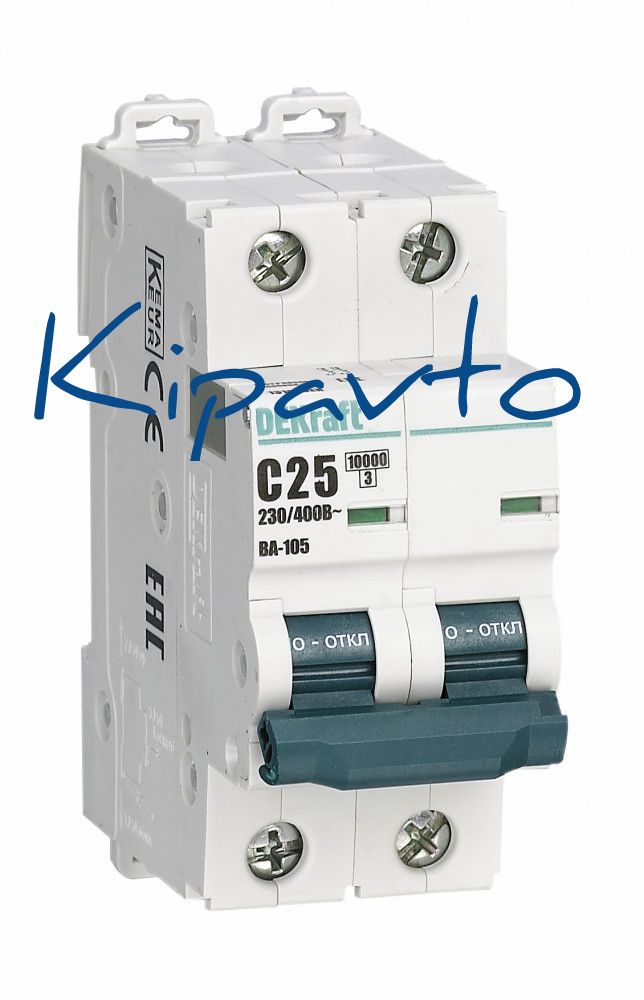 Автоматический выключатель серии ВА-105 DEKraft, 2P, ном. ток 2 А, характеристика D, откл. способность Icn 10 кА, установка - на DIN-рейку, ширина - 2 мод. х 18мм. Преимуществом выключателей ВА-105 является их высокая механическая и электрическая износостойкость — в 20 000 и 10 000 циклов соответственно. Аппараты ВА-105 имеют возможность применения независимых расцепителей на переменный и постоянный ток, а также возможность установки устройств на аппараты гребенчатых шин типа PIN.