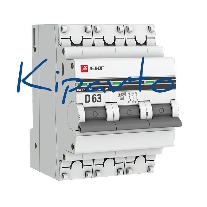 - авт. выкл. 3P 63А (D) 6кА ВА 47-63M без тепл. расцепит. EKF PROxima