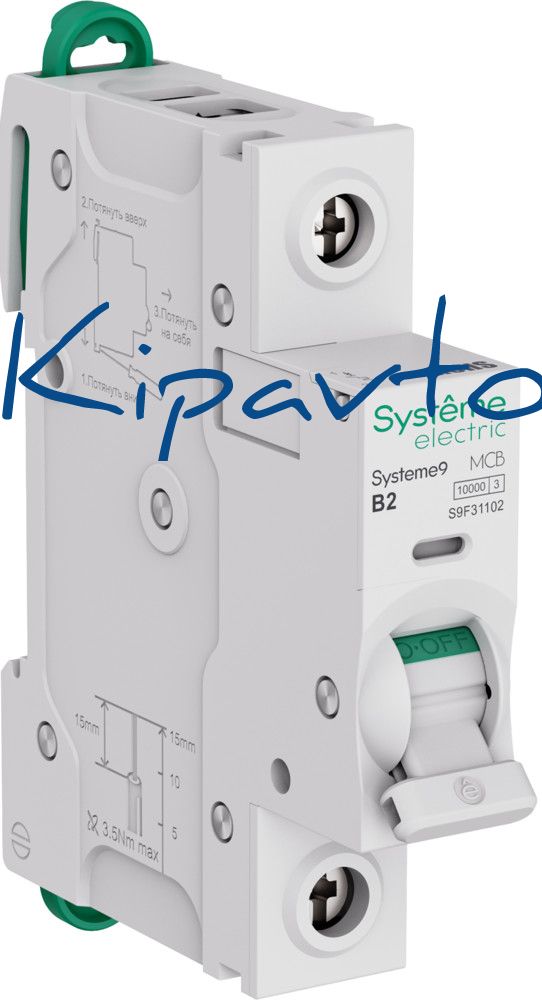 Автоматический выключатель S9FH, серии Systeme9, Systeme Electric, 1-полюсный, номинальный ток 2 А, характеристика B, Icn - 10 кА, Icu - 15 кА. Соответствует требованиям стандартов ГОСТ IEC 60898-1 и ГОСТ IEC 60947-2. Применяется в электрических сетях напряжением 230 В. Предназначен для защиты цепей от перегрузок и токов короткого замыкания. Оснащен двойными безопасными клеммами раздельного монтажа проводников, механизмом мгновенной коммутации, индикаторами состояния контактной группы и срабатывания по причине аварии. Монтируется на DIN-рейку при помощи двухпозиционных защёлок, с возможностью демонтажа без снятия шины PIN.