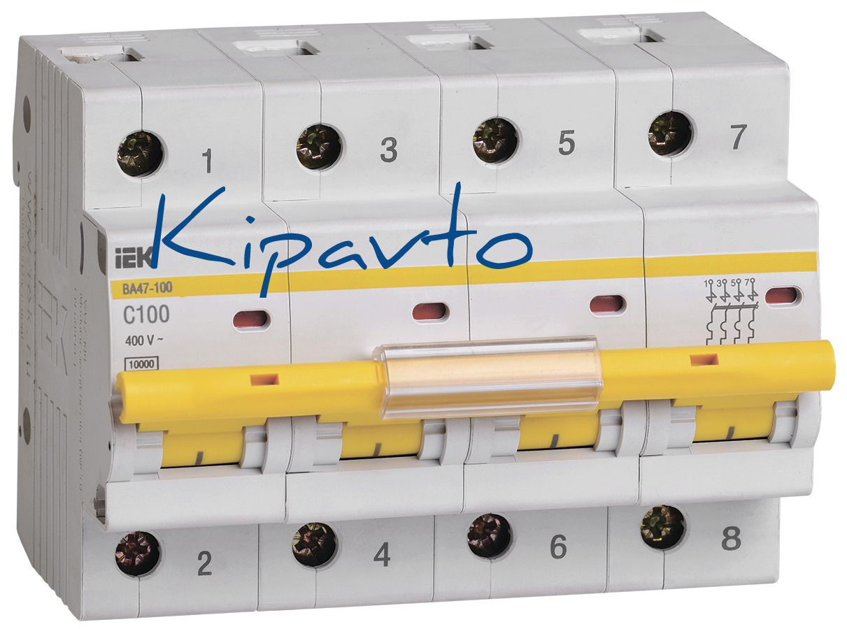 Выключатель автоматический четырехполюсный 100А С ВА47-100 10кА