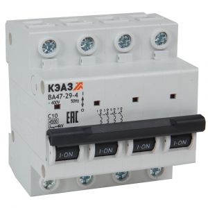Модульный автоматический 4 полюсный выключатель переменного тока с предельной коммутационной способностью при переменном токе 4.5 кА на номинальный ток 20 А . Модульные автоматические выключатели КЭАЗ на токи до 63А защищают оборудование от токов перегрузки и короткого замыкания в системах распределения электроэнергии. Автомат ВА 47-29 специально разработан для использования в экономичных решениях с ограниченным бюджетом.