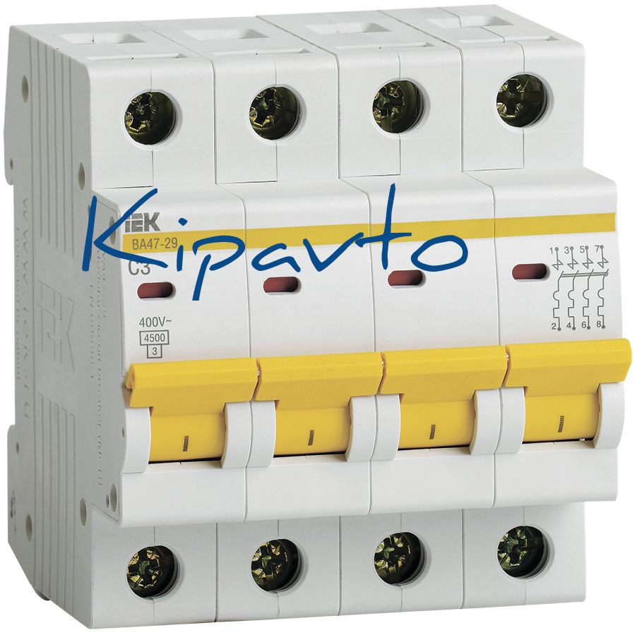 Выключатель автоматический четырехполюсный 3А С ВА47-29 4.5кА